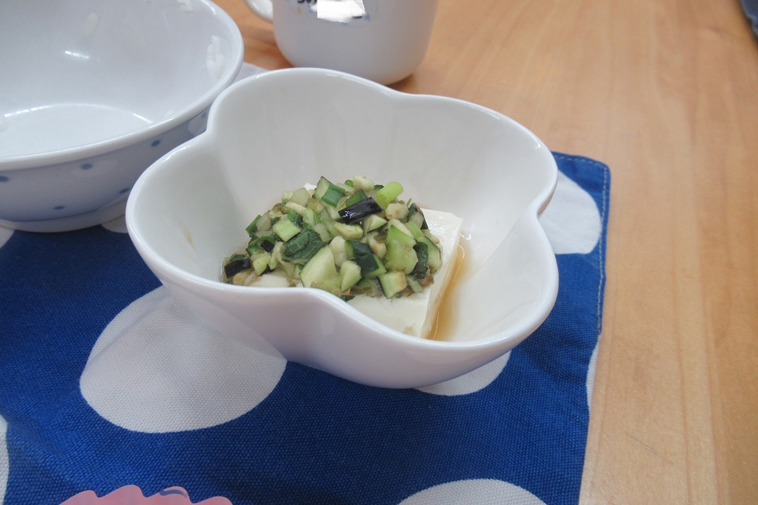 お豆腐にのっているのは『山形のだし』です。 夏の郷土料理! 子どもたちもパクパク食べていましたよ。