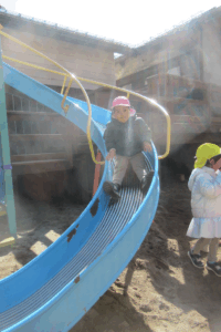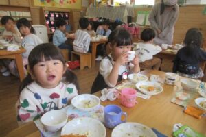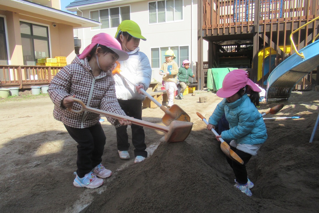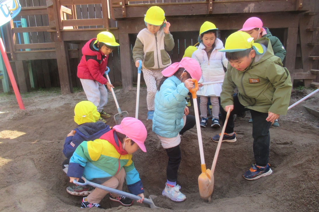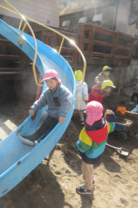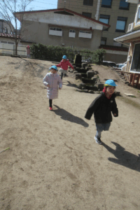 園庭に駆け出す子どもたち!! 青空が気持ちいい