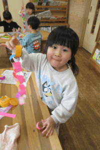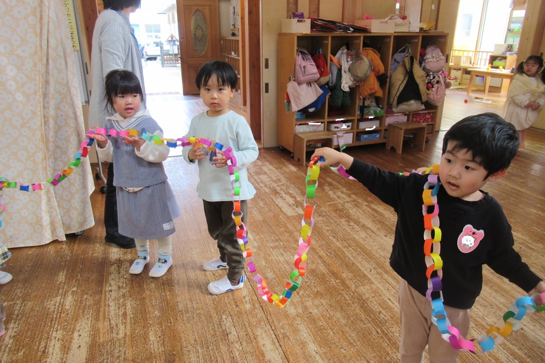 ホールに飾る輪つなぎに挑戦!!
